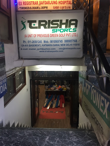Trisha Sports, situated at Shaheed Jeet Singh Marg, Katwaria Sarai, we pride ourselves on being authorized dealers of renowned brands such as TaylorMade Adidas Golf, Nike, Puma, Wilson, Powerbuilt, US Kid, Spalding, Cleveland, SG Cricket, Nivia, Cosco, Dunlop, Yonex, Spunk, Head, and Lotto. We offer a wide range of sports products including badminton, basketball, football, golf, hockey, and table tennis equipment. Whether you're in need of cricket gear, soccer accessories, basketballs, or yoga m...
