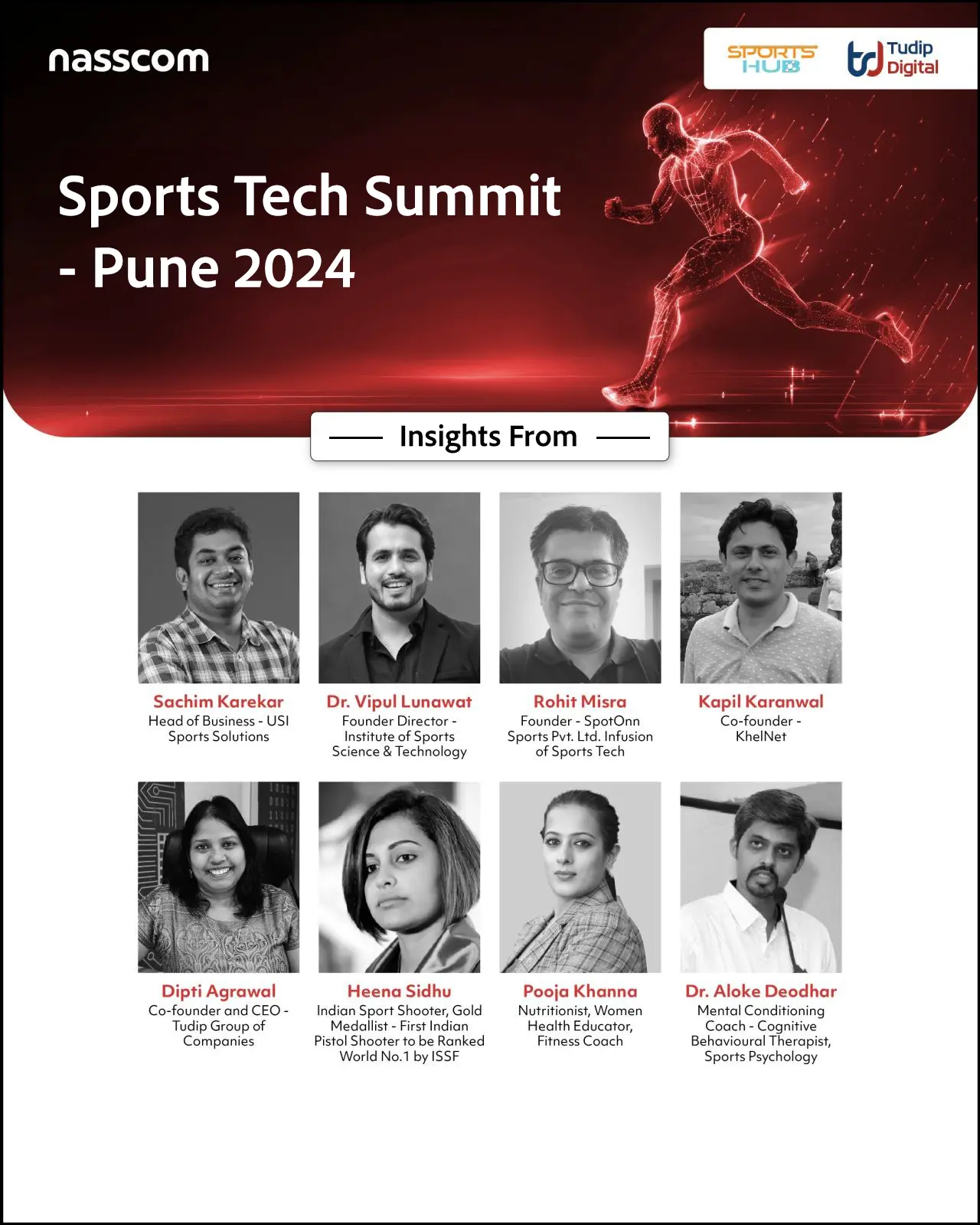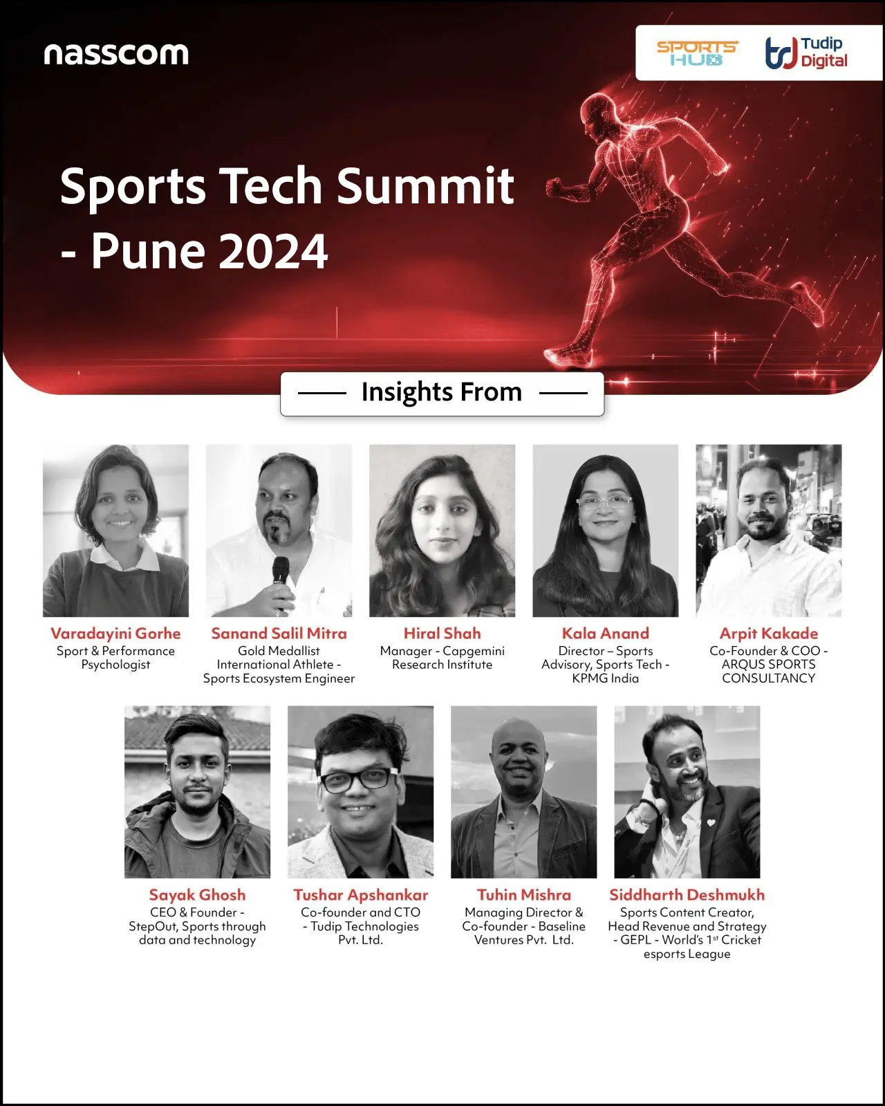 This event aimed to unite industry leaders, innovators, athletes, and enthusiasts to delve into the latest advancements in sports technology. The audience got great insights from the visionary leaders like Dipti Agrawal I Varadayini Gorhe | Sanand Salil Mitra | Hiral Shah | Kala Anand I| Arpit Kakade | Sayak Ghosh | Tushar Apshankar | Tuhin Mishra | Siddharth Deshmukh | Sachim Karekar | Dr. Vipul Lunawat | Rohit Mishra | Kapil Karanwal | Heena Sidhu | Pooja Khanna | Dr. Aloke Deodhar